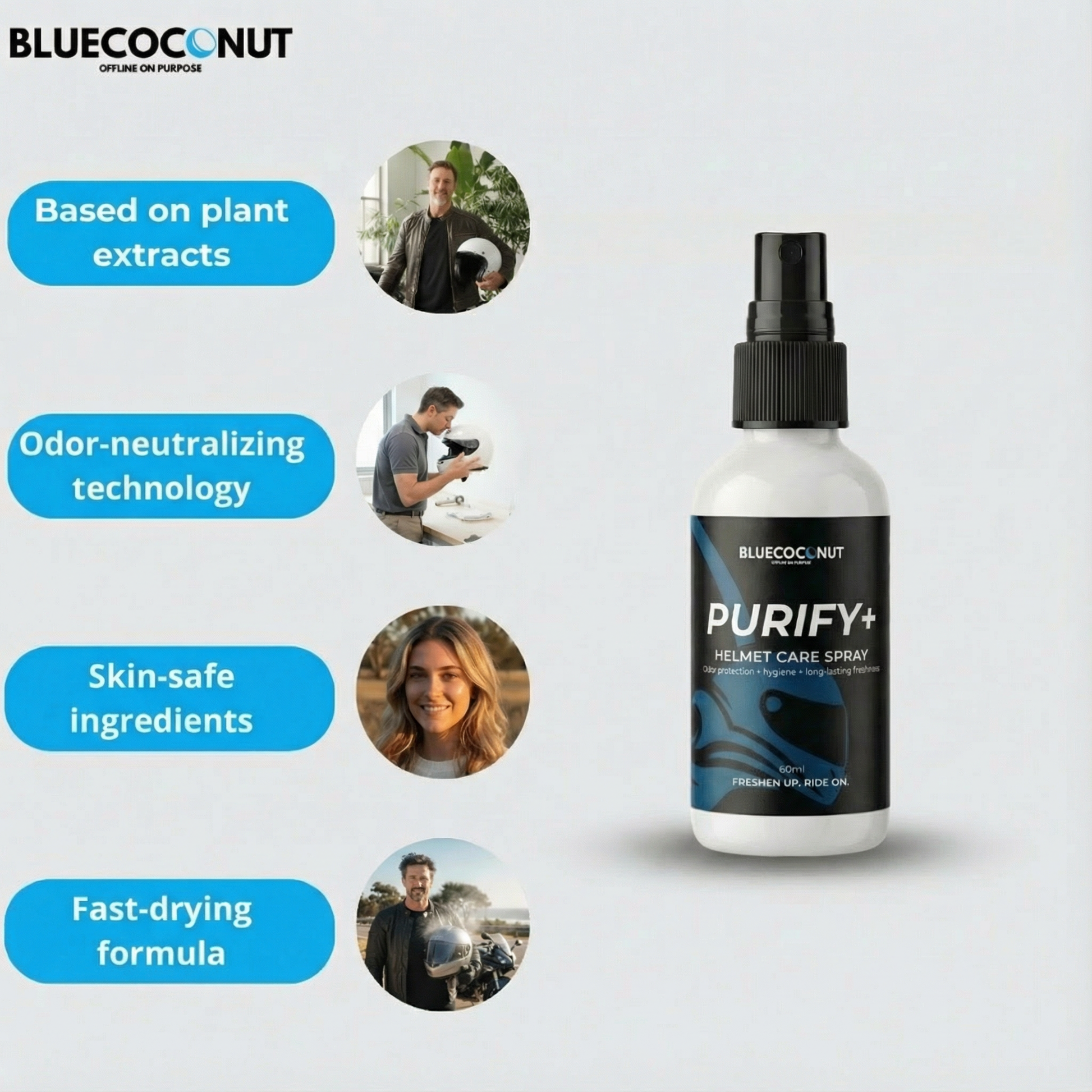 PURIFY+ - A gentle, plant-based formula to break down sweat, bacteria, and stubborn odors inside helmets, gloves, and riding gear.