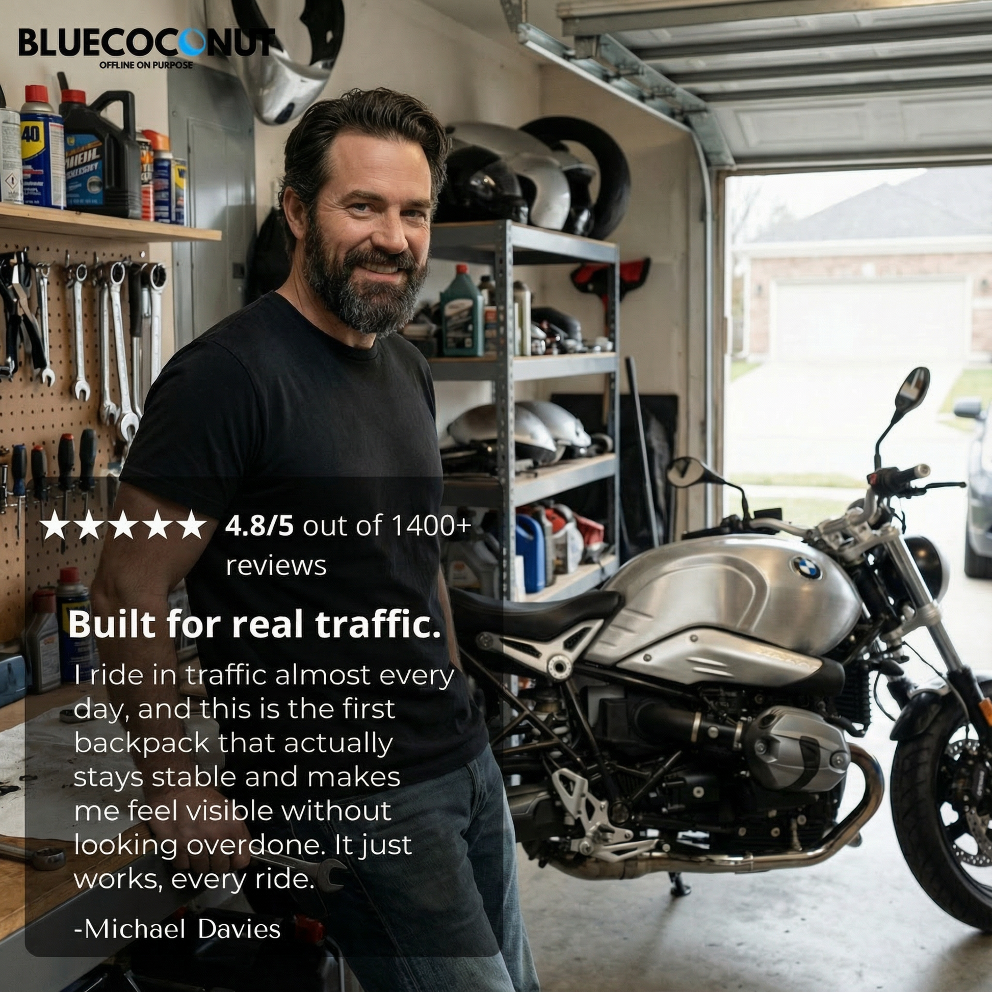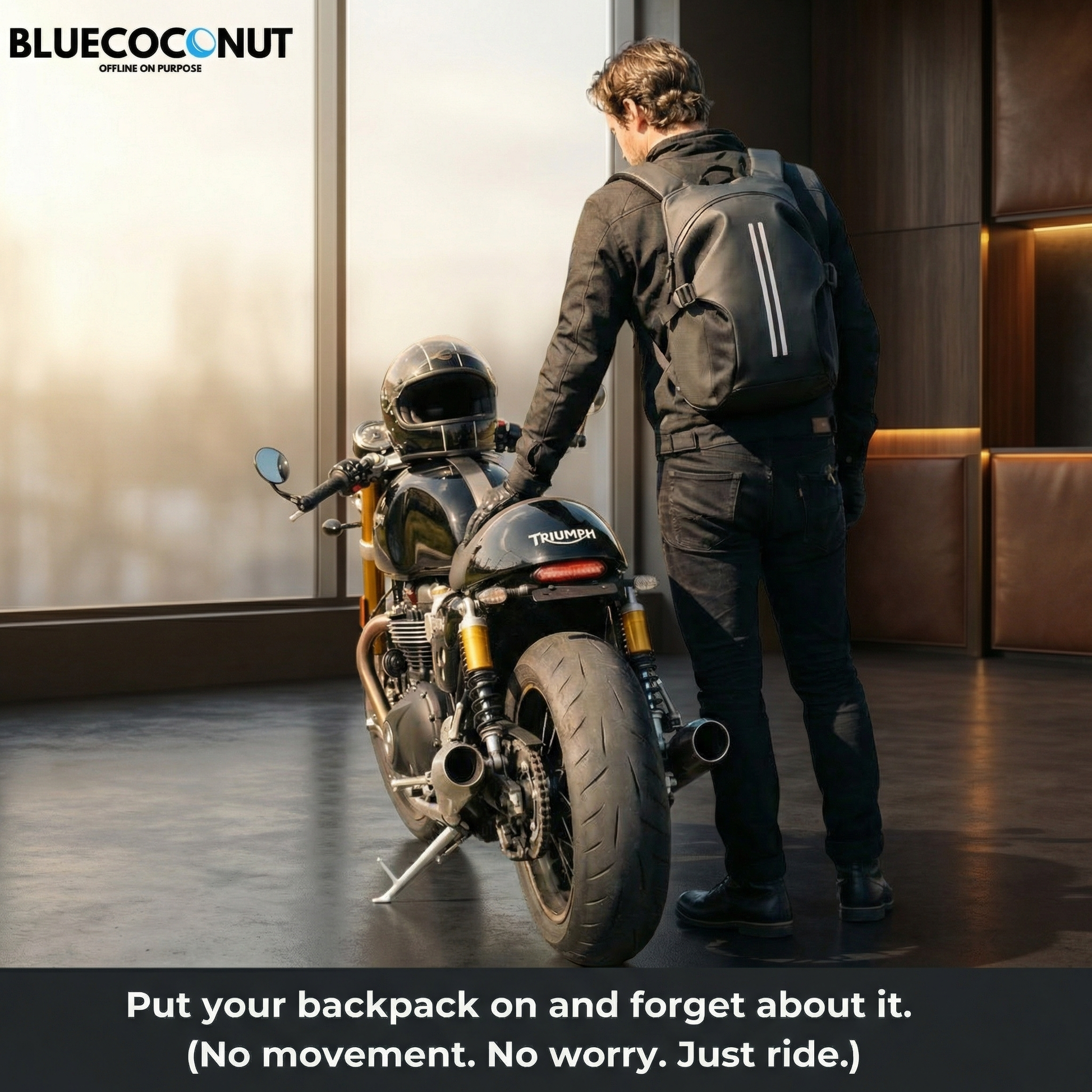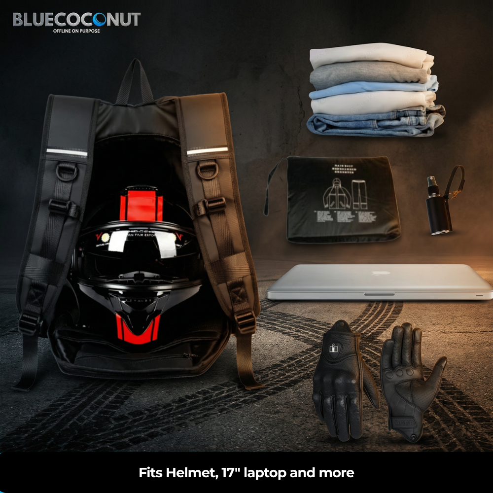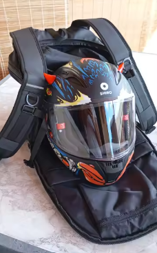 “Super comfortable on long rides. My helmet fits inside easily, and the bag stays tight against my back even at highway speeds.”